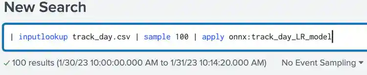 Running model inference is the same workflow that MLTK and ML-SPL users are already very familiar with. There is one minor difference - the model name after the apply command needs to have the onnx: prefix. This tells MLTK and the apply command that the model being used for inference is an ONNX model.