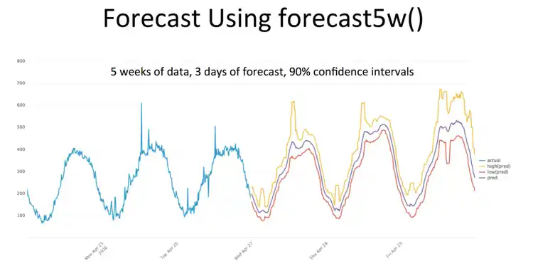 Snippet #5: We are replacing _time with time, making our time travel complete. Exactly like we did in the last post for forecasting a single day into the future.