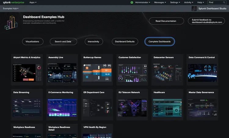 - Examples Hub - Find the Examples Hub from the Dashboards page in Search & Reporting