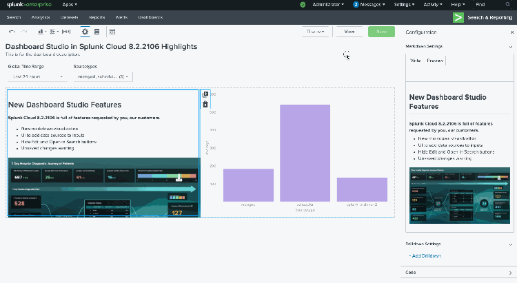 Here on the Splunk Dashboards team we take your feedback seriously. While we can't get to every request right away, we do add most requests to the backlog so we can roll your feedback into the product. In this blog post, we'll cover new features and improvements to Dashboard Studio in Splunk Cloud Platform 8.2.2106 based on feedback from you, our customers: