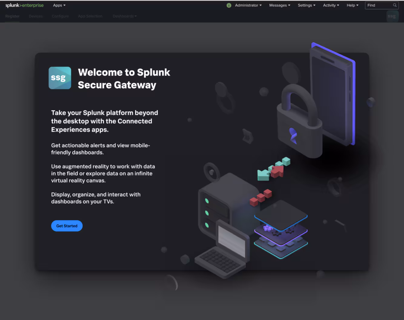 The Secure Gateway Splunk app is already included in these Splunk platform versions, with more recent Splunk releases carrying new and improved SSG features. To get started, simply enable SSG and/or click into the app from the Splunk app list. After completing the in-app admin/sc_admin onboarding steps, Spacebridge is automatically configured on the administrator’s behalf meaning no manual port management is needed. At this point, all Splunk users can take advantage of Connected Experiences by registering mobile devices under their Splunk user.