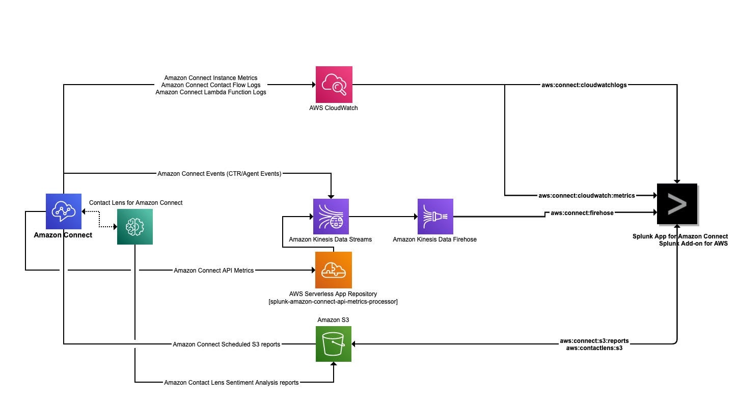 The app can also interpret the admin-generated, scheduled historic metrics like Queue contact metrics and Agent performance metrics scheduled reports that are in S3. Splunk can retrieve these CSV reports from S3 using the Simple Queue Service (SQS)-based S3 input provided in the Splunk Add-on for AWS.