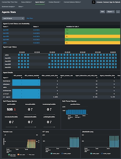 With the most recent release of the Splunk App for Amazon Connect, we have incorporated real-time insight into metrics like packet loss, latency, and jitter, measured from an endpoint device like an agent laptop or workstation. This detection capability offers a glimpse of whether there may be bandwidth issues or resource contention on devices, causing poor audio or video quality resulting in a bad CX. Other features include geolocation to help identify issues impacting a specific region or individual, disconnect direction to ensure compliance standards are met where only customers can end calls, and visibility to see when agents are experiencing difficulty setting up a connection, how long it takes before they start talking, and even determine if the microphone is the culprit.