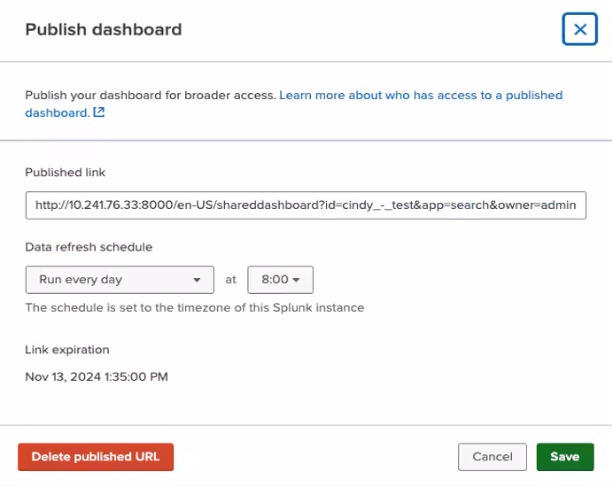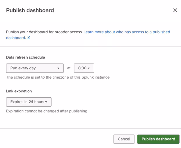In Splunk Cloud Platform 9.3.2411, we’re excited to announce support for publish dashboards, the button input, as well as a number of small enhancements that will level up your dashboarding experience.