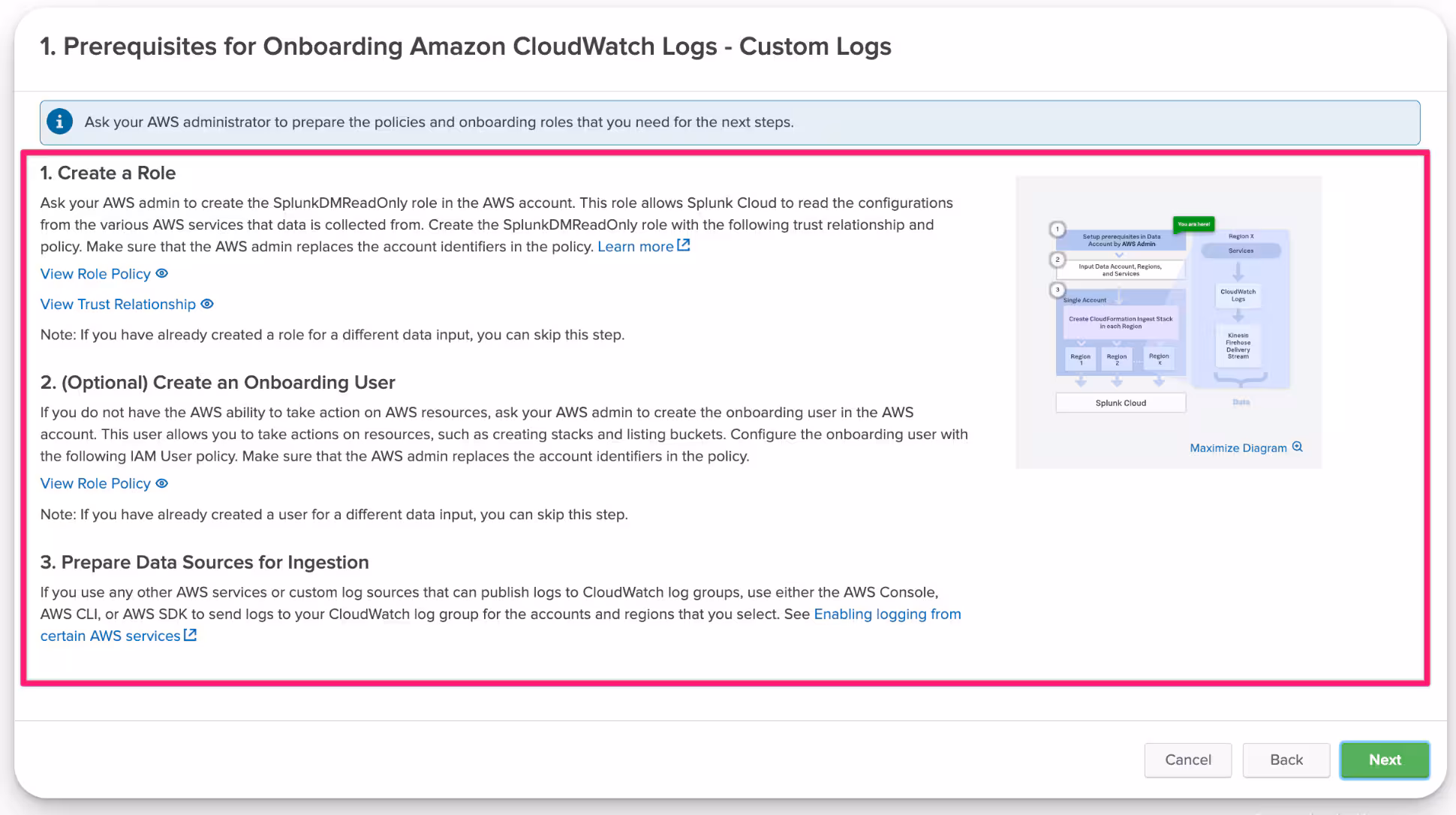 2.5. Onboard the desired log groups and review the data input setup.