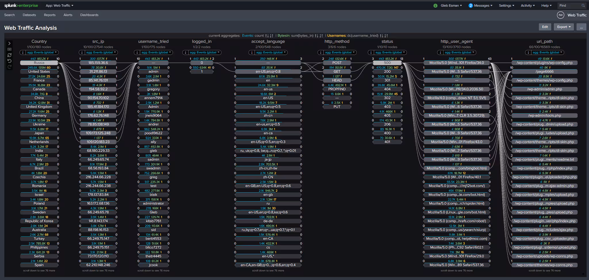 Country, src_ip, username_tried, logged_in, accept_language, http_method, status, http_user_agent, uri_path