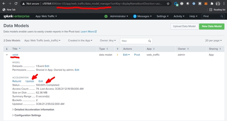 This Data Model Acceleration process will begin and it may take up to an hour depending on the speed of your server. You can monitor this process until 100% completion by clicking "Update" link at data model manager panel here: