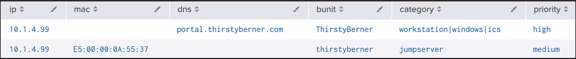 Below is our Asset Center dashboard where we can see that the mac and dns have merged into a single asset record, the categories have merged in the multi-select field of category and the value for priority in our lookup frothly_assets_2019 has taken precedence over Thirsty Berner ICS Assets, due to its ranking.