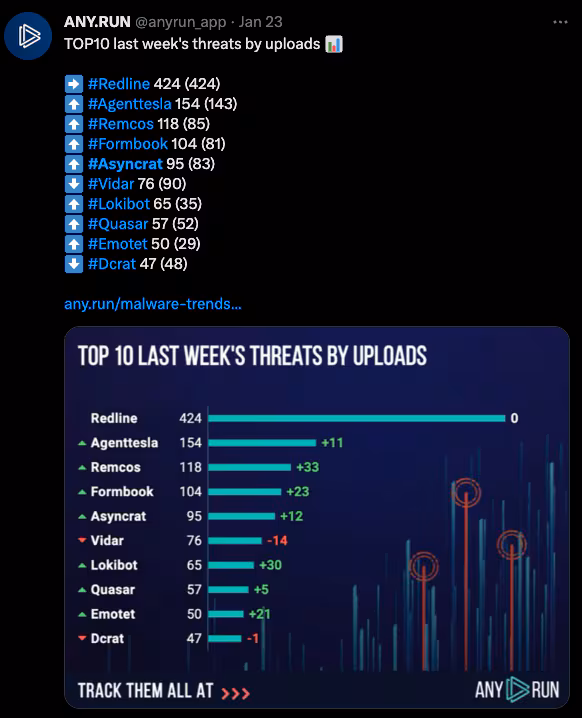 AsyncRAT has also been in the weekly TOP 10 malware trends tracker on app.any.run for the past few months.