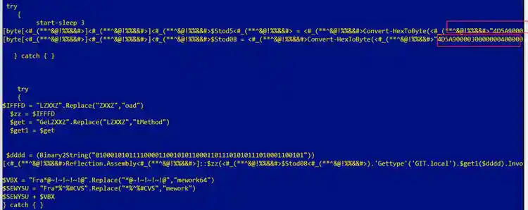 Another instance we found was an obfuscated PowerShell script being used by AsyncRAT to load its actual code. The PowerShell script will convert a large hex string to binary bytes which is the .NET compiled AsyncRAT that will be executed through .NET reflection Load Assembly Library.
