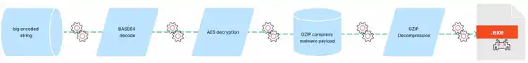- Finally after decryption, it decompresses it using the GZIP algorithm to extract the malware executable and load it using the .NET Reflection library.