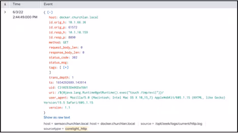 You may not have access to Confluence Access Logs but do have access to network traffic analyzers or web traffic logs. Consider looking for the same indicators listed above in these logs too. Any data source that provides visibility into the details of HTTP transactions will work. An example of this in practice would be reviewing Corelight (Zeek) data. In this data, Zeek logs the decoded version of the exploit string, so it’s easier to see what’s going on here. An example search leveraging the destination IP address of the Confluence host follows.