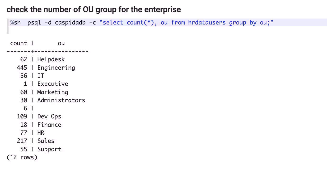 The scale of users, entities (e.g. devices, applications) and their associated profiles may determine the performance of some models. Validate user and entity profiles are preliminary for reliable detections. The notebook exemplifies the way to access those numbers from hrdatausers, hrdataaccounts, systems, and usystems tables. The following two examples illustrate the ways to review your currently registered users (organized by OU group) and devices (categorized by device types), which will be applied to UBA peer grouping baseline analysis.