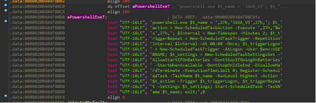 The PowerShell script in Figure 10 instructs CastleRAT to register a Scheduled Task that runs a local copy of the malware at system startup. This ensures persistence after system reboot and can be used to escalate or sustain elevated privileges.