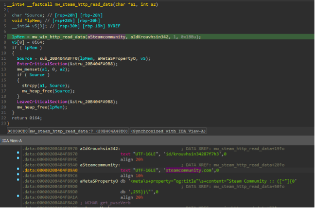 CastleRAT also leverages legitimate external websites such as Steam Community pages as benign-looking dead-drop resolvers to host or reference data that can point to additional C2 infrastructure. Operators may post seemingly innocuous content or encoded payload metadata to these pages, allowing the malware to retrieve configuration or follow-up instructions while blending communications with normal web traffic.