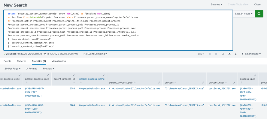 as lastTime from datamodel=Endpoint.Processes where Processes.parent_process_name=ComputerDefaults.exe