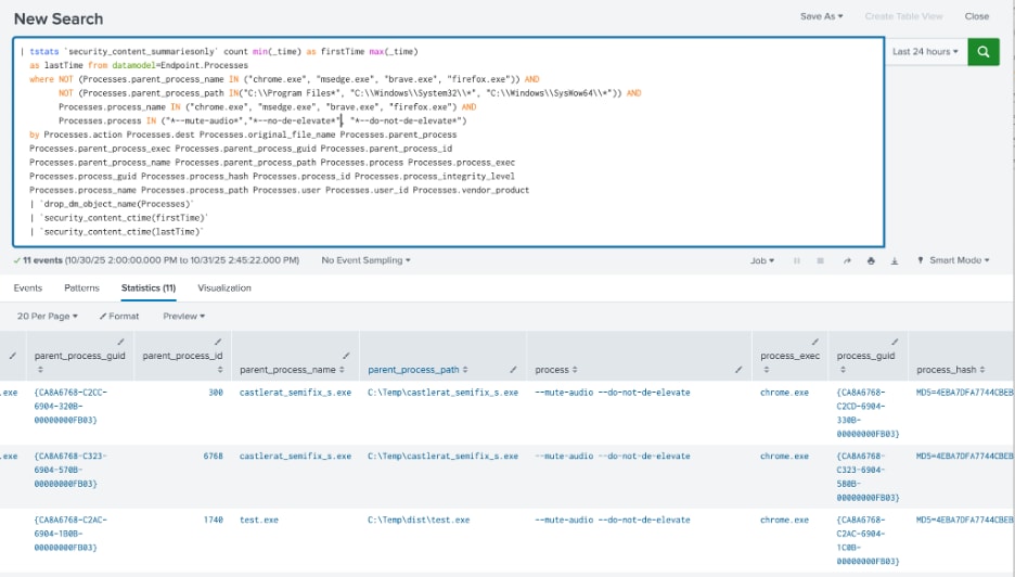 Processes.process Processes.process_exec Processes.process_guid Processes.process_hash