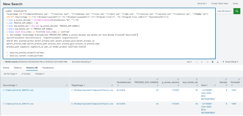 Figure 18: Windows Handle Duplication in Known UAC-Bypass Binaries Detection.