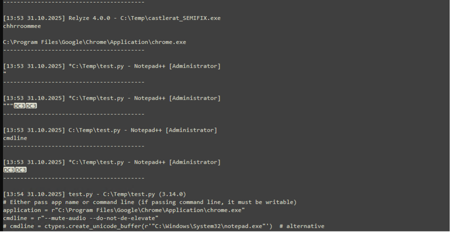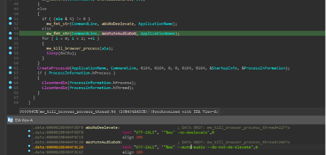 CastleRAT has been observed killing a running browser (e.g. brave.exe, chrome.exe, msedge.exe and firefox.exe) and launching a new Chromium‑based process with audio‑related command‑line flags so the malware can monitor or control audio behavior without alerting the user. By relaunching the browser this way, the RAT can ensure the browser behaves in a predictable, quiet mode that makes audio interception and automated control easier and less likely to produce visible audio notifications or system prompts.