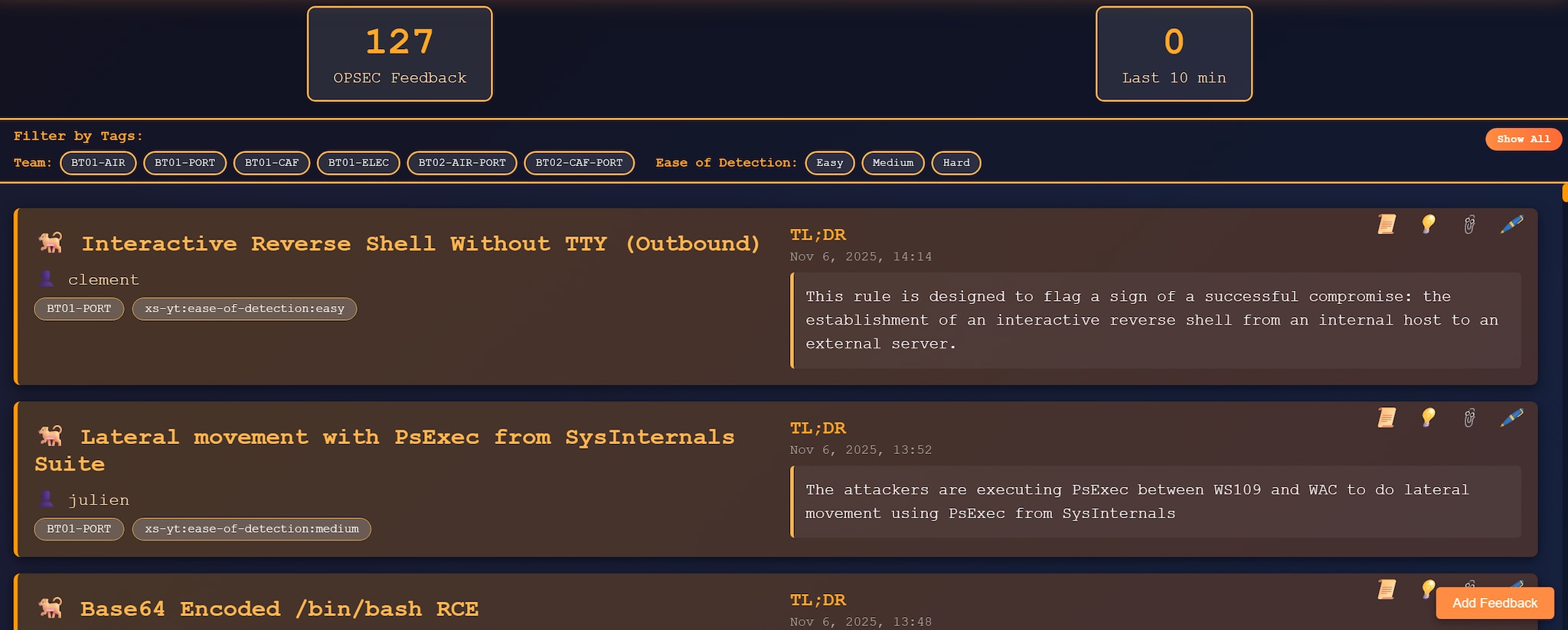 This year the feedback was provided to the red teamers in an immediate way via a new platform that interfaces with MISP called the “Wall of OPSEC Failures”.