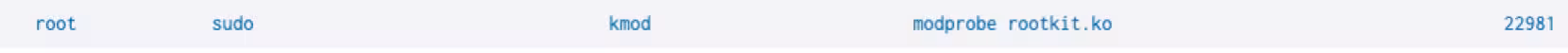Another is using “modprobe” or “insmod” to load or insert malicious rootkit or kernel modules into the kernel space. The code block shows how to use this utility tool.