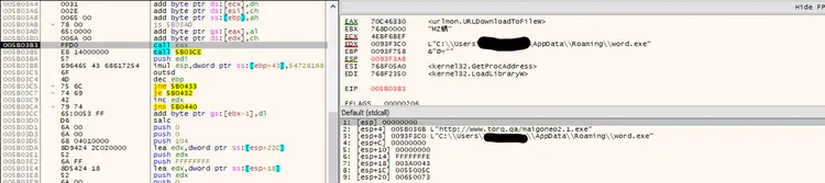 Figure 2 shows the screenshots of the shellcode that tries to download the Ave Maria RAT using UrlDownloadToFileW () API.
