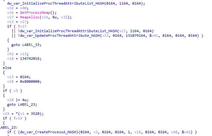 The code below in Figure 13 is the function that initializes the process attributes and thread creation for the parent process spoofing technique.