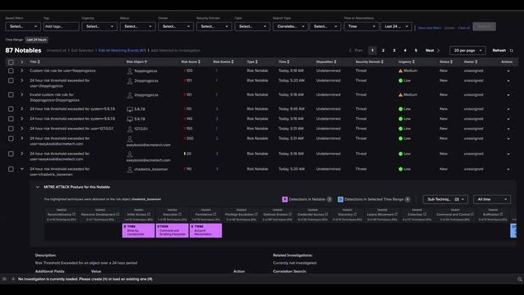 - Quickly identify the tactics and techniques observed in a notable event, and historically in older notable events for a given user or machine