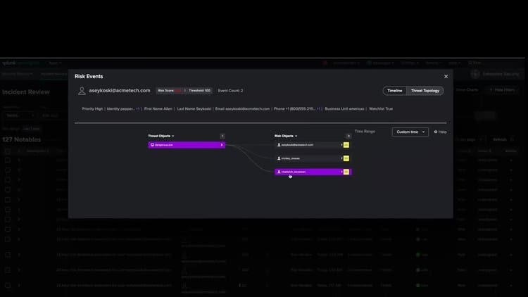 This is why we developed a feature called threat topology visualization. Using this feature, security analysts can quickly discover relationships between Splunk Enterprise Security assets and identities (a.k.a. users and machines) and threat objects (a.k.a. malicious executables, IP addresses, and file hashes). Analysts can pivot between affected assets and users in the investigation to see the scope of the incident beyond the infected user, providing improved situational awareness and an expanded viewpoint. This also allows the analyst to quickly determine the severity level of an incident, and identify additional impacted subjects without having to write a single line of code. And perhaps most importantly, it saves time and increases productivity, further reducing mean time to response (MTTR) for the SOC.