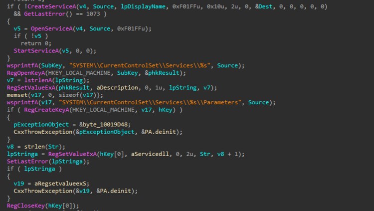 Aside from using multiple registry-based persistence techniques, this Gh0st RAT variant also creates a service entry that points to its malicious DLL, as shown in Figure 15. By registering itself as part of a Windows service, the malware ensures its code is executed in a more privileged context typically under SYSTEM when the service starts. This effectively gives it elevated privileges without needing to exploit vulnerability at runtime. In addition, because services can be configured to start automatically during system boot, this method provides another reliable persistence mechanism.