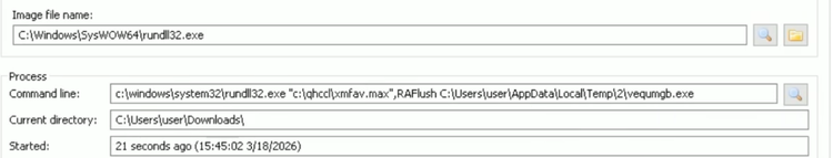 Figure 03 below shows the screenshot of the rundll32.exe process that executed the decrypted Gh0st RAT malware in the compromised host or system.