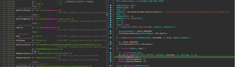This Gh0st RAT variant creates a registry entry under SYSTEM\CurrentControlSet\Services\RemoteAccess\RouterManagers\Ip and using the Windows Remote Access service to load it. It drops a reference to its malicious DLL in that location because the service is designed to load router manager components from there when it starts. The malware then sets the RemoteAccess service to start automatically and restarts it, so its code gets executed right away. Once the service runs, Windows loads the malicious module with SYSTEM-level privileges, without any user involvement. This approach helps the malware stay hidden, survive reboots, and blend in with normal system activity, making it harder to spot and remove.