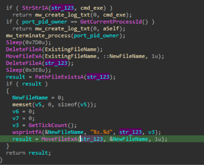 Once the malware identifies the process ID associated with port 53 (DNS), it terminates that process, removes the corresponding file, and continues its malicious activity by hijacking DNS traffic on the compromised host.