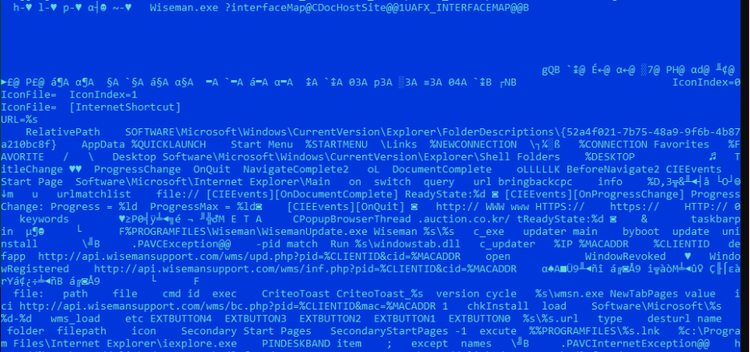 Like other malicious loaders used for detection evasion, this loader is obfuscated to hide two encrypted payloads in its resource section. One of the payloads is an adware module detected as AdWare.Win32.CloverPlus. This unwanted software is designed to install advertising components and change browser behavior, such as startup pages and pop-up ads. Figure 01 shows a snippet of the executable named wiseman.exe related to this adware component.
