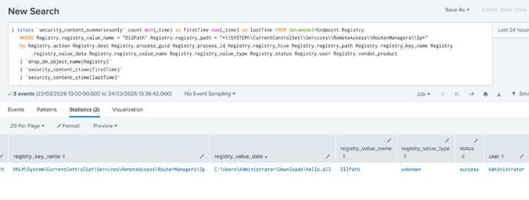This analytic identifies the modification of the Windows RemoteAccess Registry Entry. This technique can be used by malware authors, adversaries, threat actors and red teamers to gain persistence on the system.
