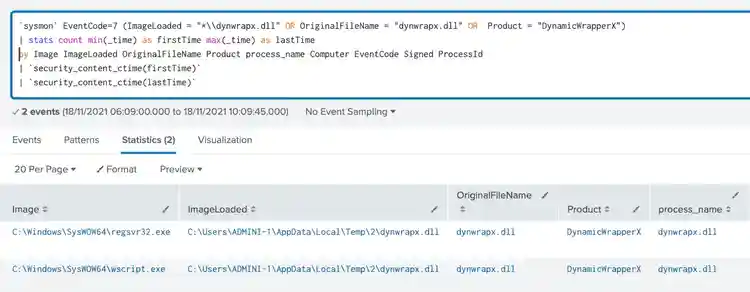 DynamicWrapperX is an ActiveX component that can be used in a VBScript to call Windows API functions, but it requires the dynwrapx.dll to be installed and registered. With that, registering or loading dynwrapx.dll to a host is highly suspicious. In most instances when it is maliciously used the best way to triage is to review parallel processes and pivot on the process_guid. Review the registry for any suspicious modifications meant to load dynwrapx.dll. Identify any suspicious module loads of dynwrapx.dll. This detection will return and identify the processes that invoke vbs/wscript/cscript.