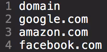 2. Set up monitoring for outside domains. Create a file called “domains.csv.” in $SPLUNK_HOME/etc/apps/DA-ESS-ContentUpdates/lookups. Insert a header field by entering “domain” as the first word. Then list the domains you want to monitor—one per line.