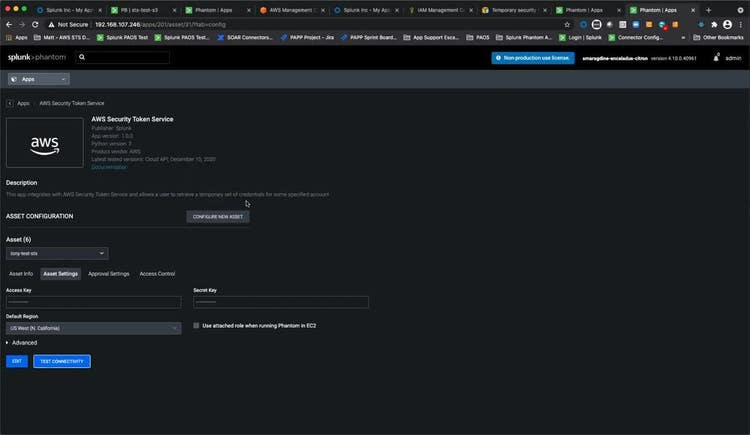 Using Splunk Phantom’s new AWS Security Token Service integration, we’re able to take advantage of the AssumeRole capability. You’ve diligently set up the roles you need to manage your AWS environment, so now let’s leverage that effort in Splunk Phantom.