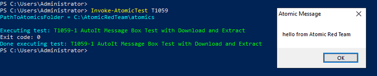 The Atomic test will download AutoIT3.exe, and run the automsgbox.au3 file.