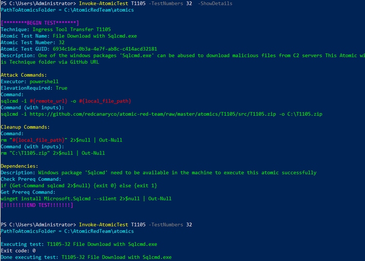 To begin our testing, we will utilize Atomic Red Team T1105 test number 32.