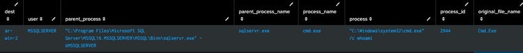 as lastTime from datamodel=Endpoint.Processes where Processes.parent_process_name="sqlservr.exe"