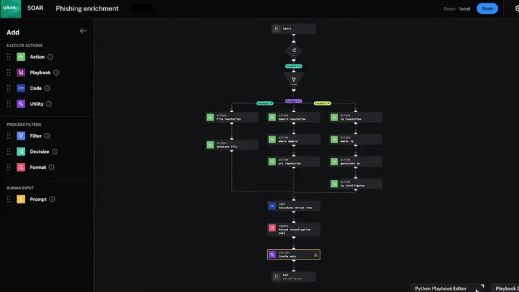 A hallmark of Splunk SOAR lies in the efficiency gains that result from leveraging its flexible playbook and intuitive playbook functionality. The ability to define clear rules for the orchestration and remediation of an extensive array of security events enables security teams to expedite and automate security incident response.