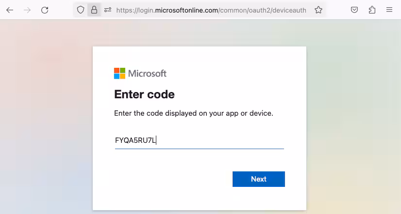 Attackers can abuse the device authorization grant by initiating a device code authorization flow themselves to obtain a unique user code. They then deceive victims into entering this code on a legitimate Microsoft website, often under the guise of a trustworthy process or necessary action. If the victim is convinced and submits the code, the attacker can capture the resulting access token. TokenTactics is an open source tool that automates this technique.