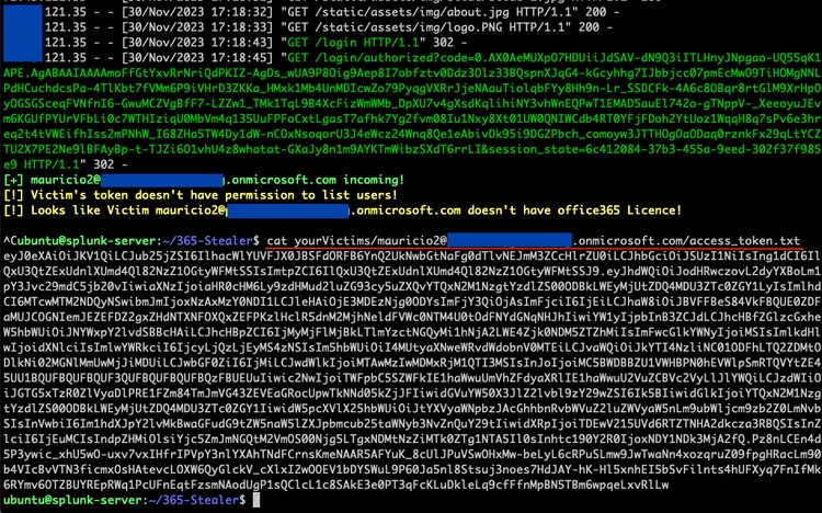 Once our simulated victim submits the code to the Microsoft-hosted site, the attacker obtains an access token that can be used to consume M365 services.