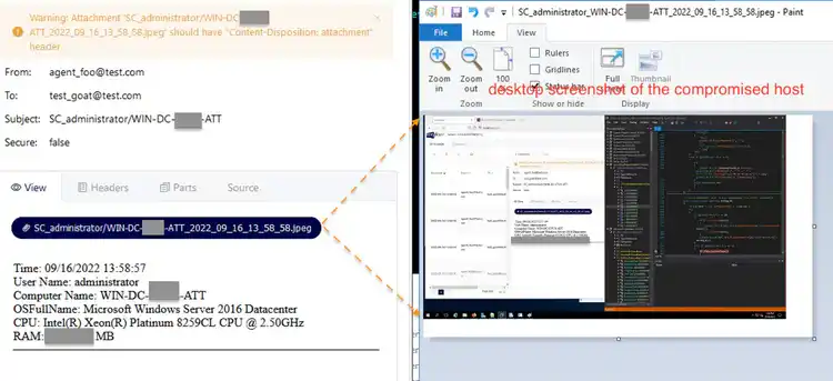 The remote C2 server was down during the analysis of this sample. STRT experimented with its SMTP communication to be able to see how the exfiltrated data looks like on the attacker side. We used a fake SMTP server by rnwood (smtp4dev) to forward all the exfiltrated data of this sample.