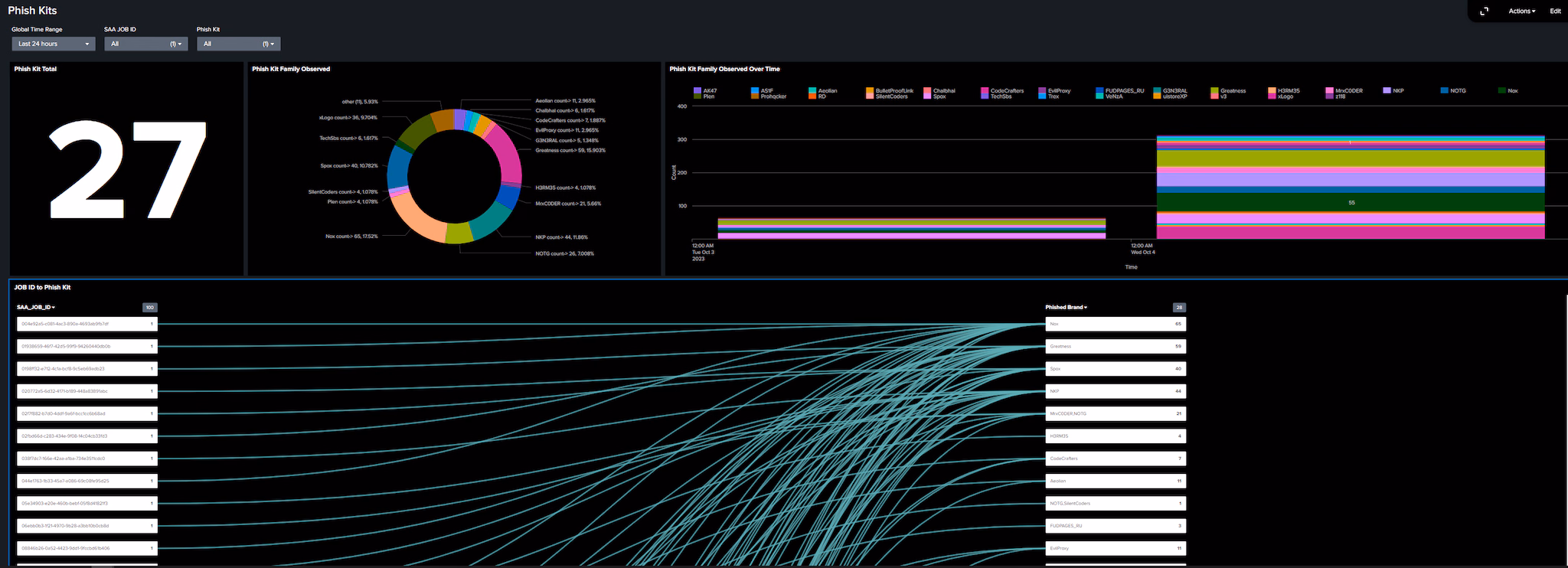 - Phishing examples by phish kit: View examples showing a particular phish kit being used in an attack
