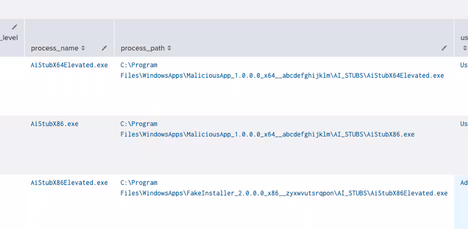 as lastTime FROM datamodel=Endpoint.Processes where Processes.process_path IN ("*\\AI_STUBS\\AiStubX64Elevated.exe",